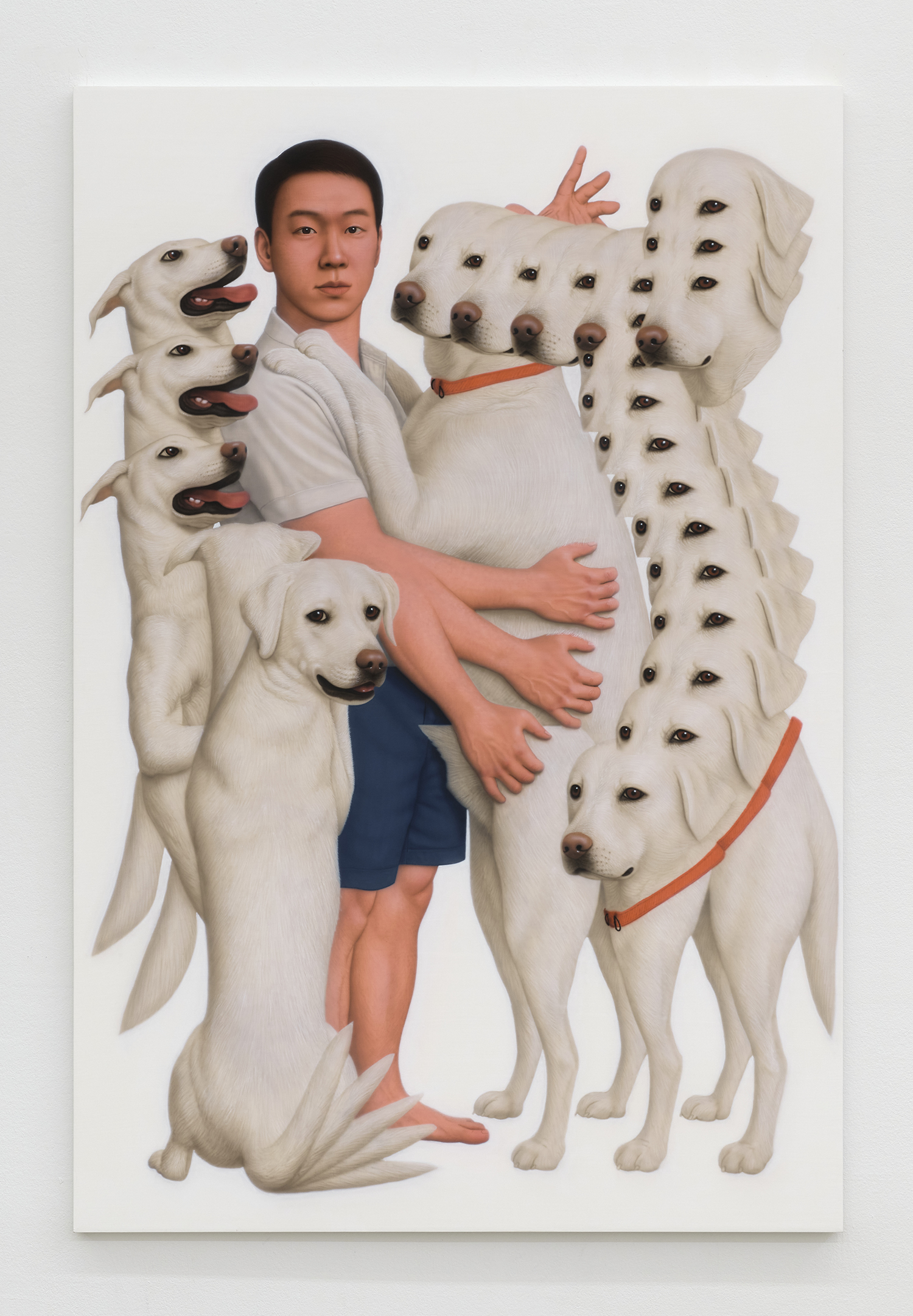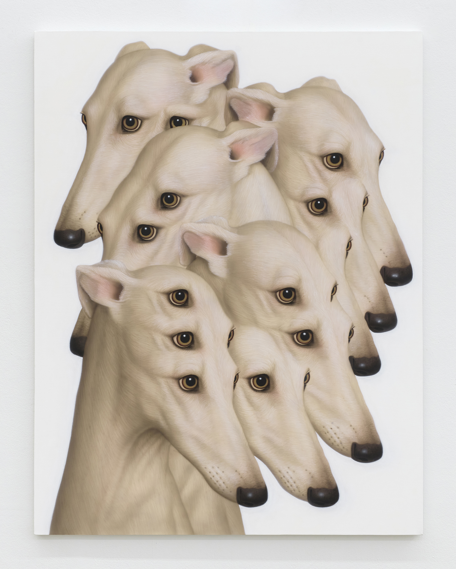Younguk Yi, A portrait of a dog that has internalised obedience yet forgotten the drills that trained it, 2025, acrylic on linen, 57 x 44 inches, 146 x 112 cm.