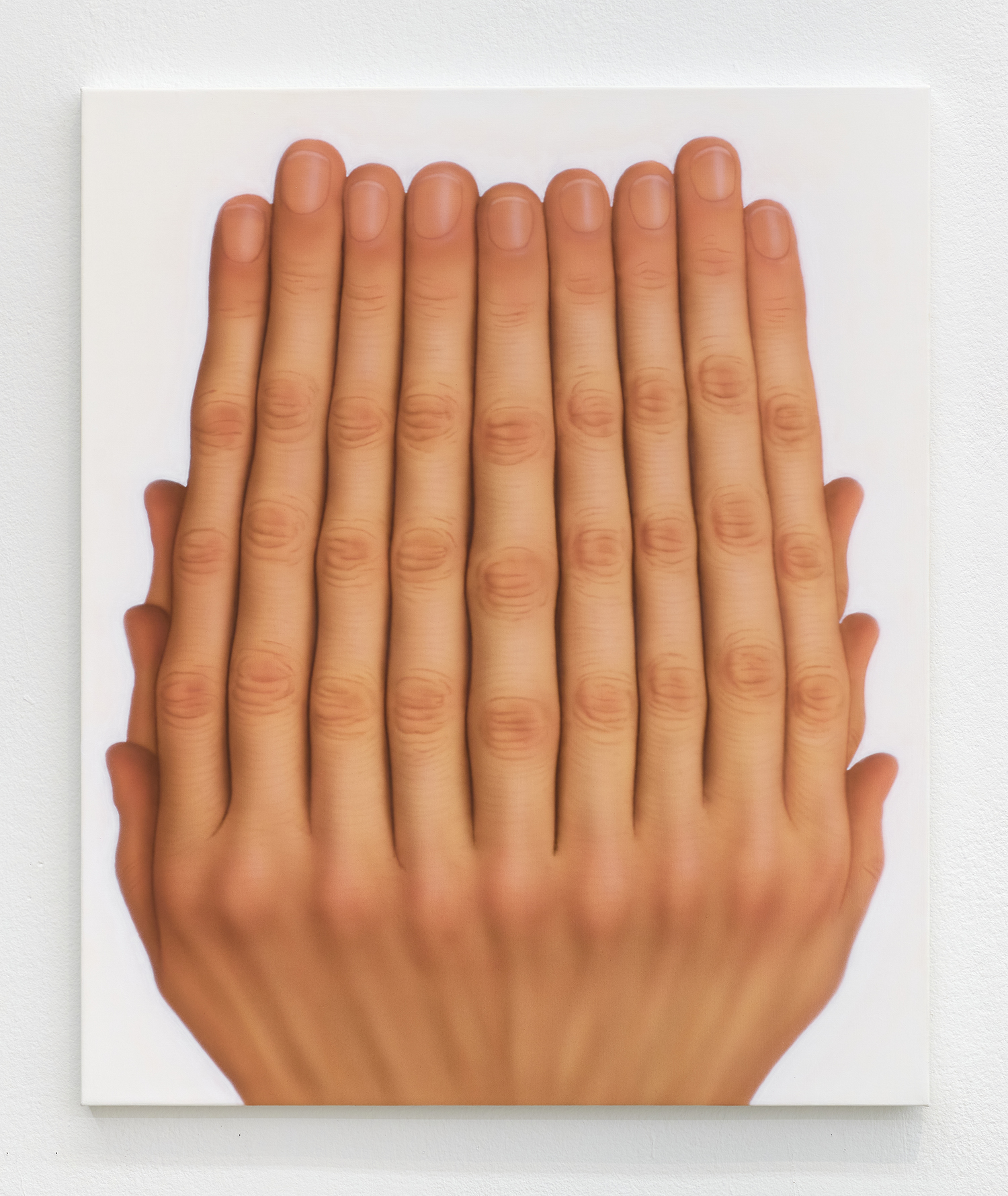 Trained in Seoul, Yi approaches painting through reiteration and distortion to test what painting can reveal once the image begins to break down. His airbrush provides pigment suspended in air, dispersed by pressure, forming shapes that hover between solidity and vapor. It trades in calibration, chance and breath and is, to the artist, "a philosophical choice." These whisper-thin gradients are then edged by hand with ghostly precision, make the paintings at first appear digital. If I hadn’t seen his geometrically-precise drawings and extensive anatomical sketching, I wouldn’t know how he was able to create works like this.