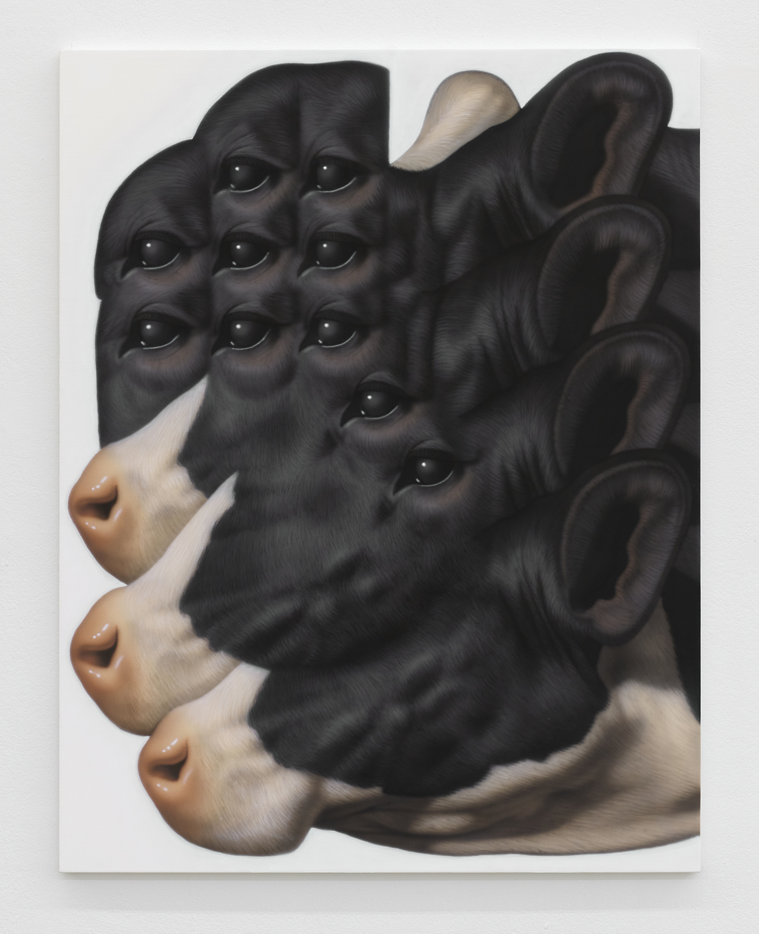 Younguk Yi, A portrait of a dairy cow in the laboratory, 2025, acrylic on linen, 46 x 36 inches, 117 x 91 cm.