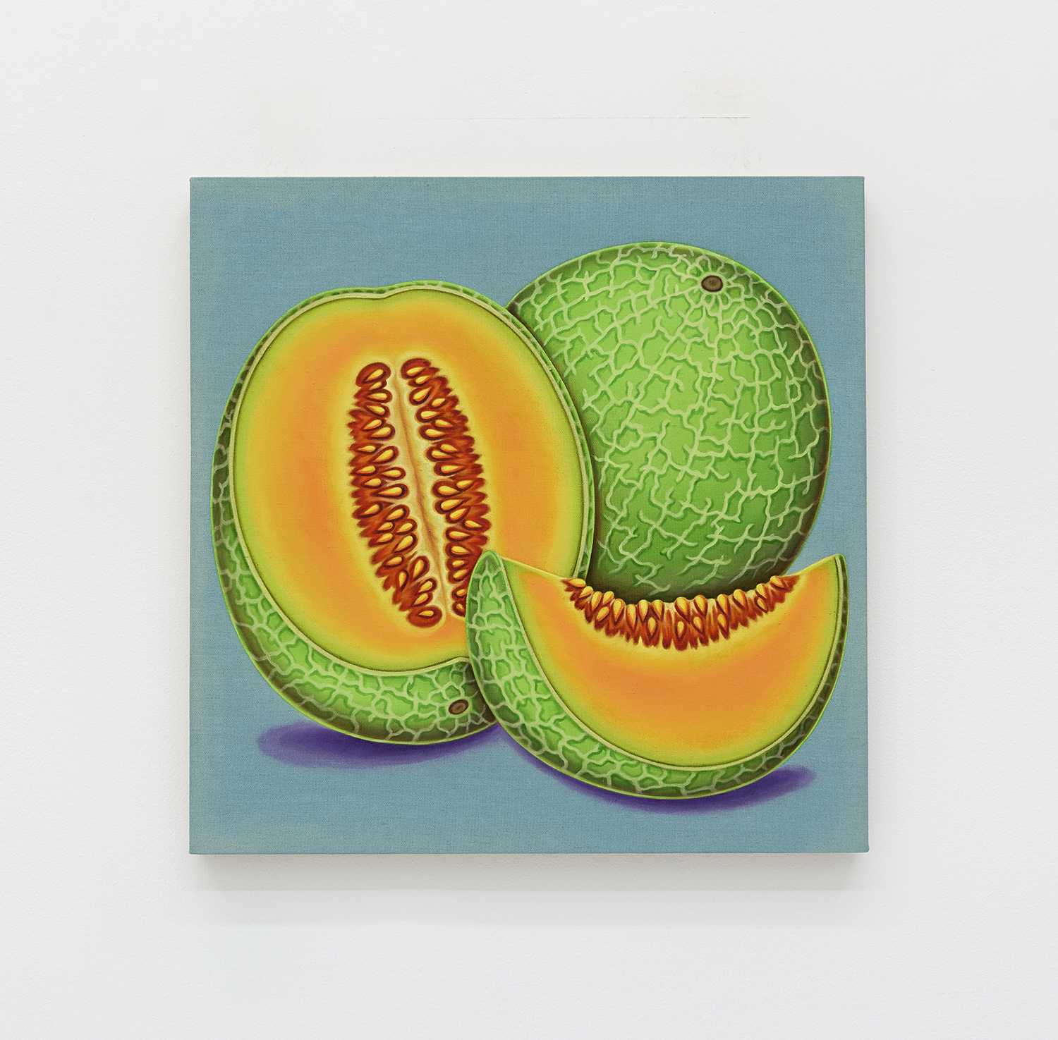 Pedro Pedro, Cantaloupe, 2022, acrylic and textile paint on linen, 24 x 24 inches, 61 x 61 cm.