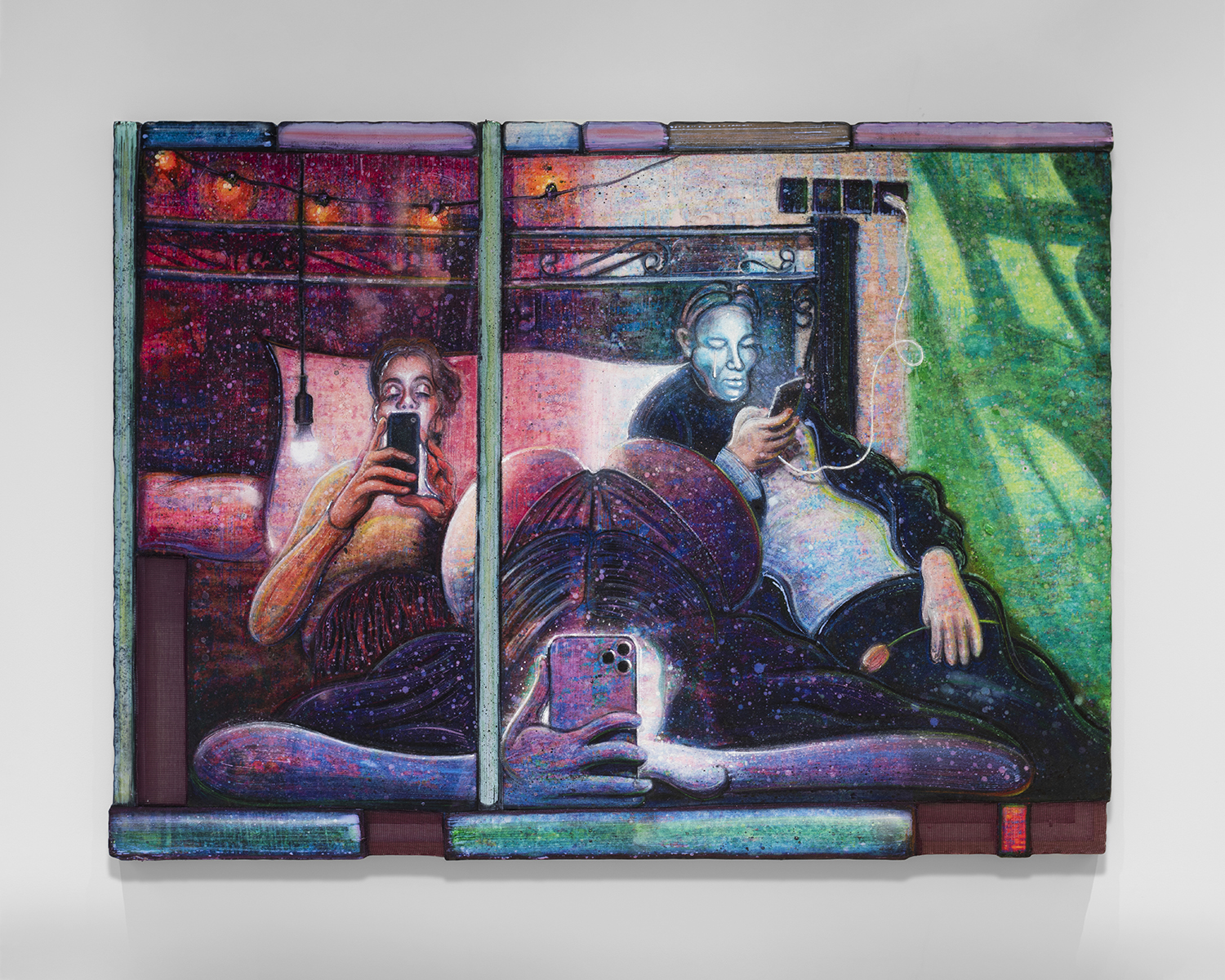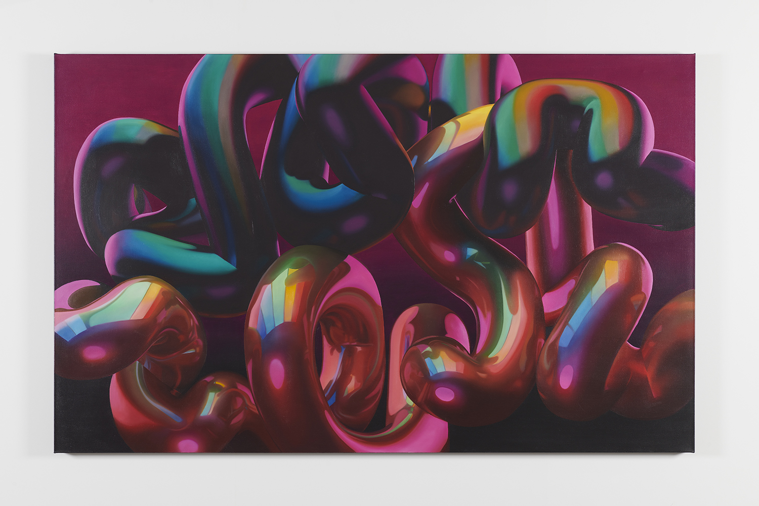 Kristian Touborg, The Network, 2023, oil, acrylic, reflective pigments on recycled polyester, 61.5 x 83.5 inches, 156 x 212 cm.