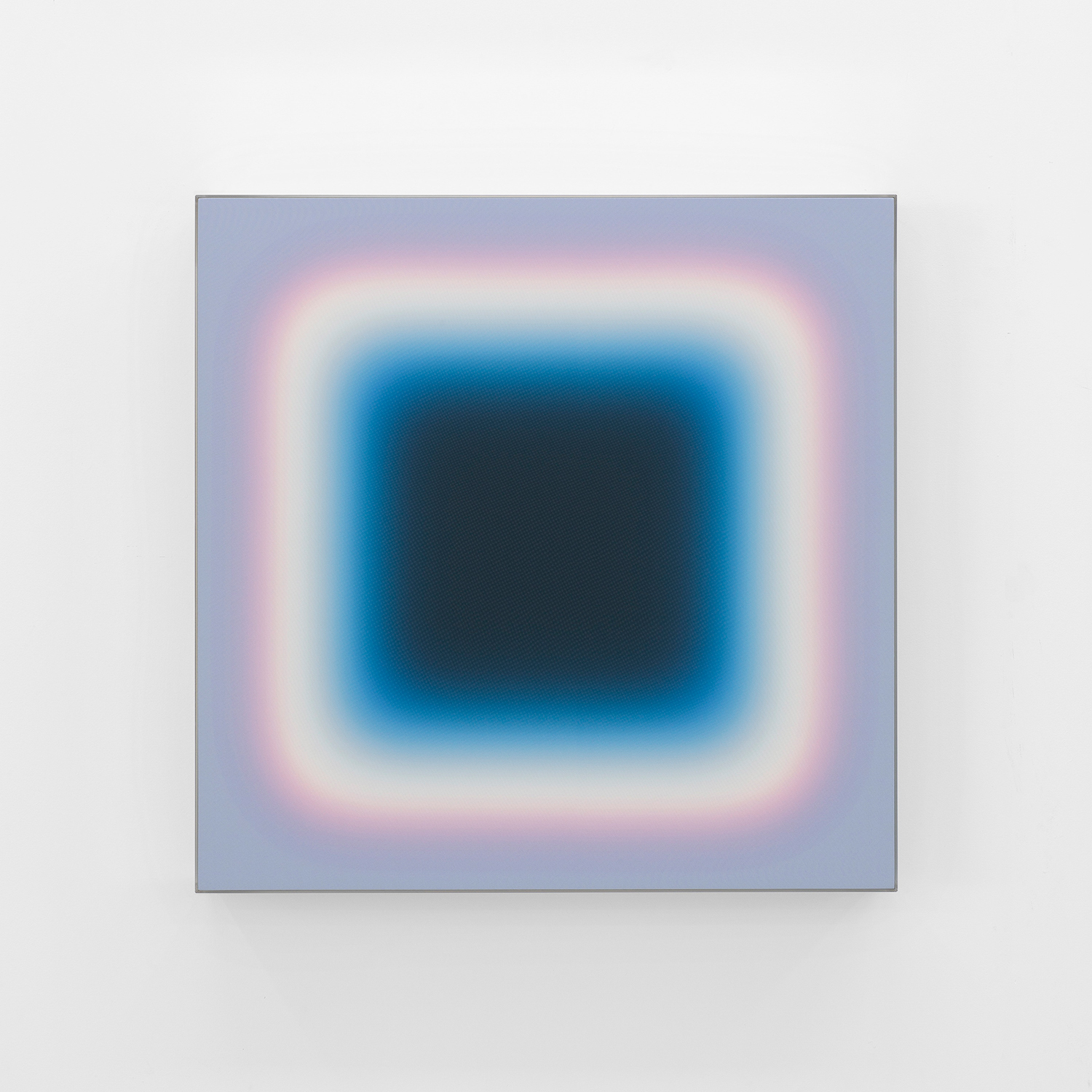 Jonny Niesche, Dreaming In Lilac In A Way, Is A Form Of Planning (Cosmic frost medium study), 2023, voile, acrylic mirror and MDF, 40 x 40 x 3.5 inches, 101 x 101 x 9 cm.