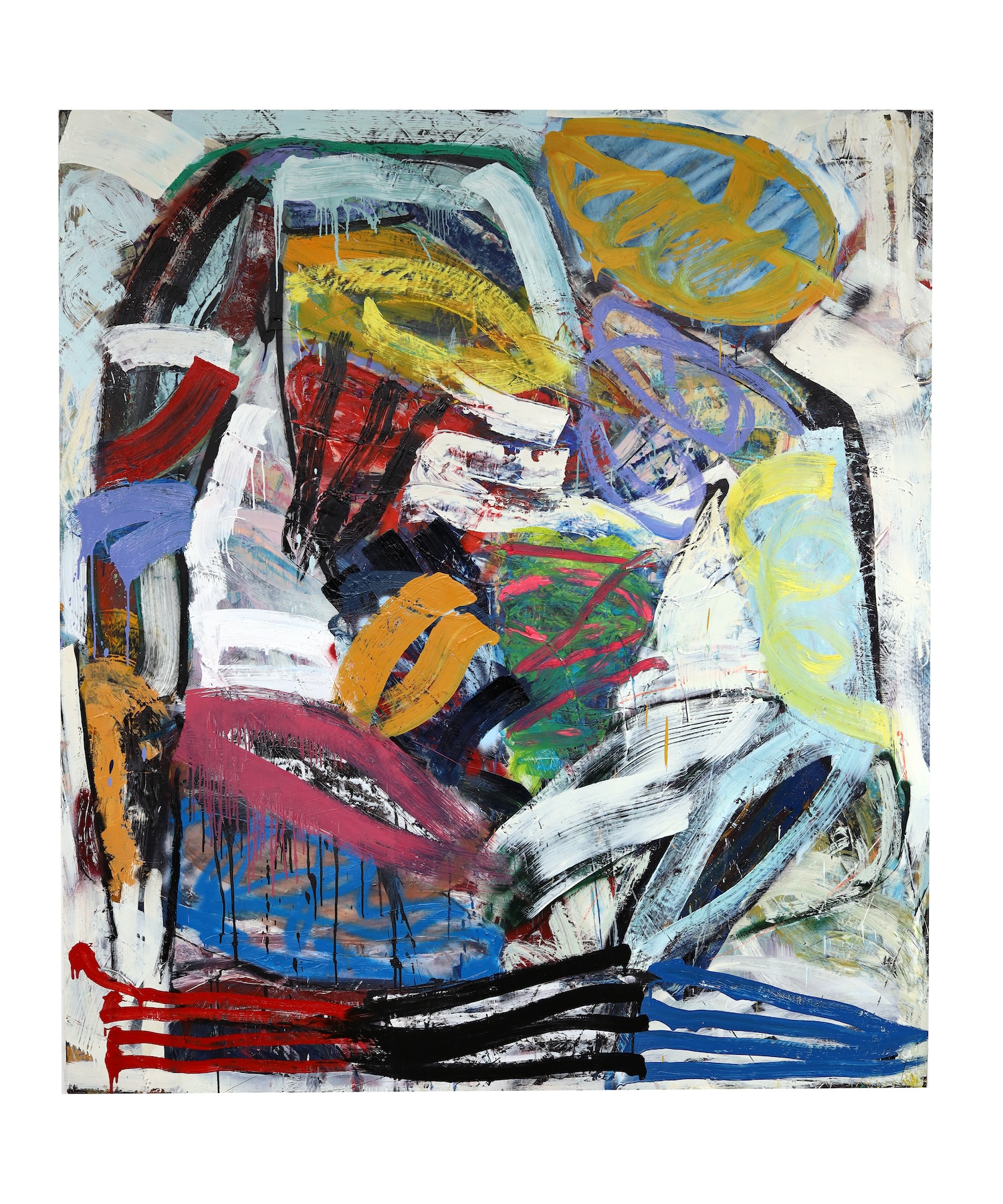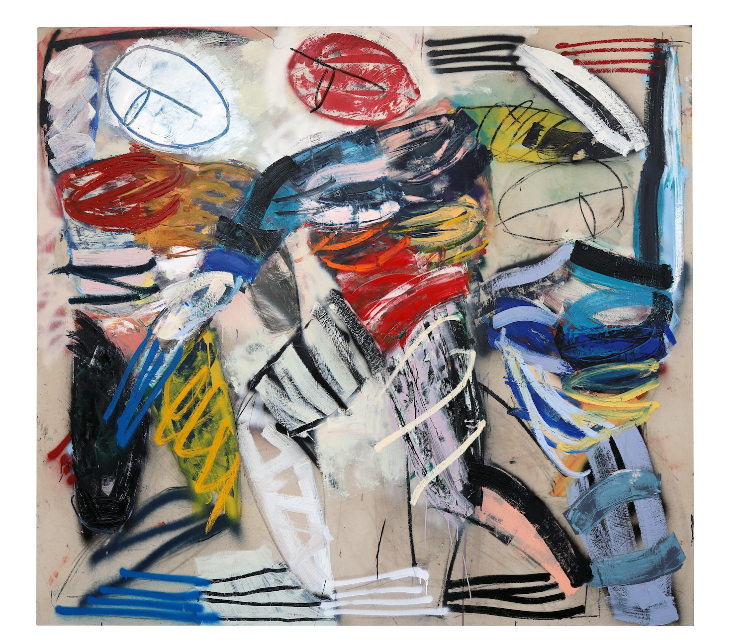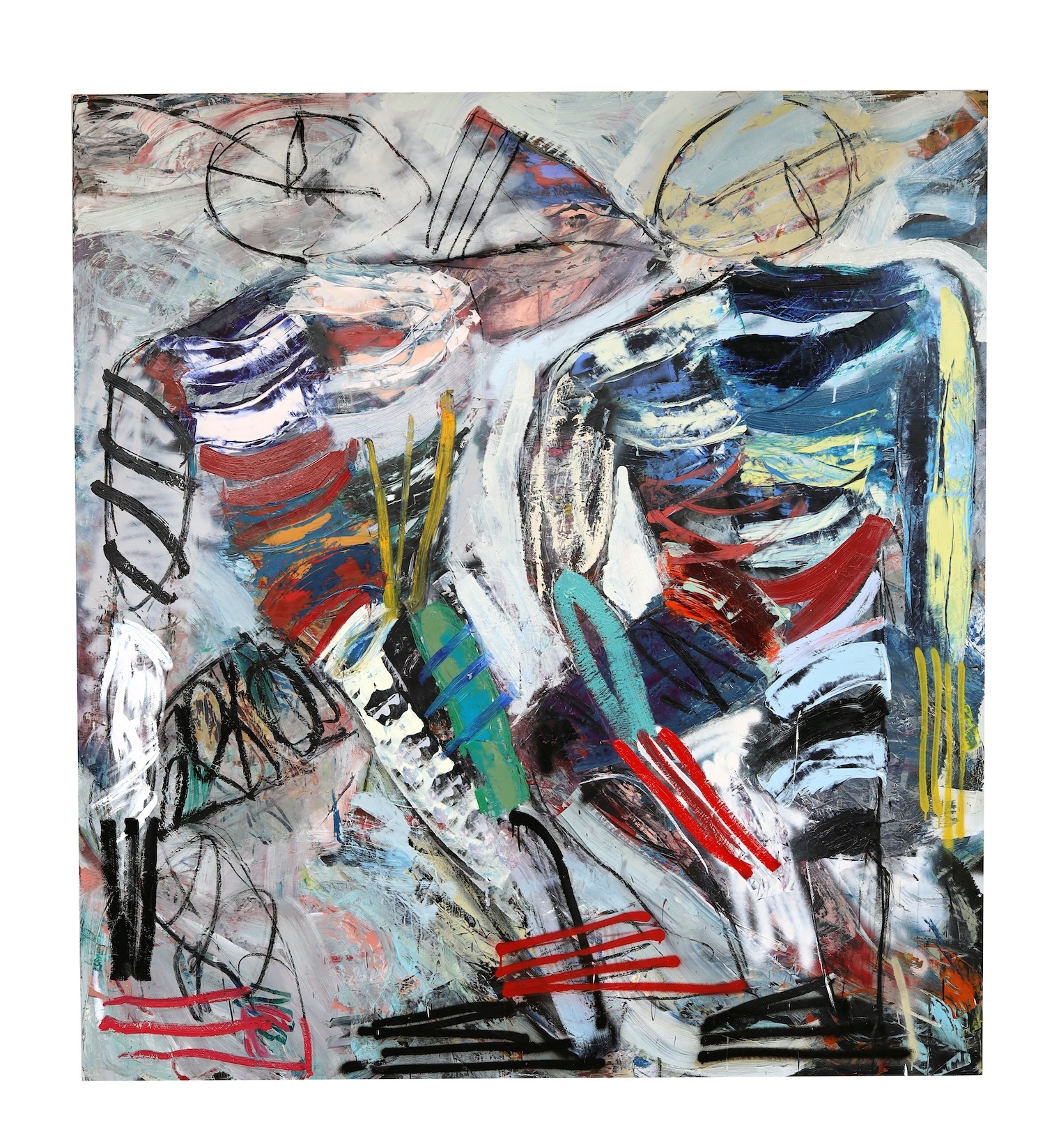 Xavier Baxter, Company, 2024, oil on canvas, 87 x 79 inches, 220 x 200 cm.