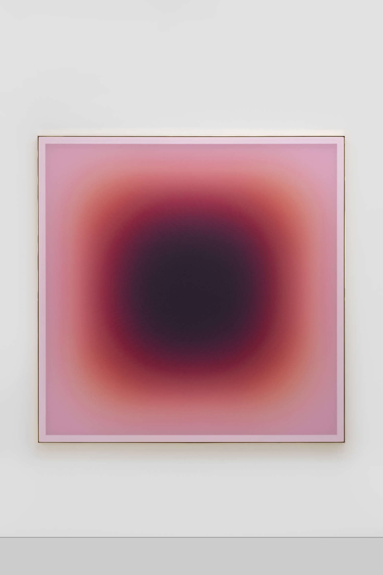 Jonny Niesche, Sunset Synonym (Cinnamon), 2023, mirror polished brass, powdercoated aluminium and voile, 69.5 x 69.5 inches, 176 x 176 cm.