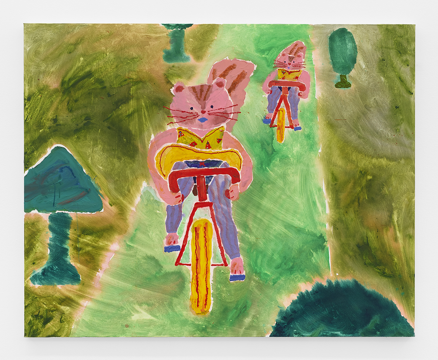 Misaki Kawai, Windy Riders, 2023, acrylic and fabric on canvas, , 47 x 59 inches, 120 x 150 cm.