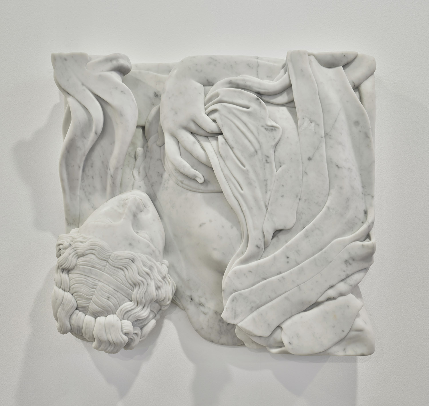 Adam Parker Smith, Venus, 2024, white carrara marble, 28 x 28 x 3.5 inches, 71 x 71 x 6 cm.