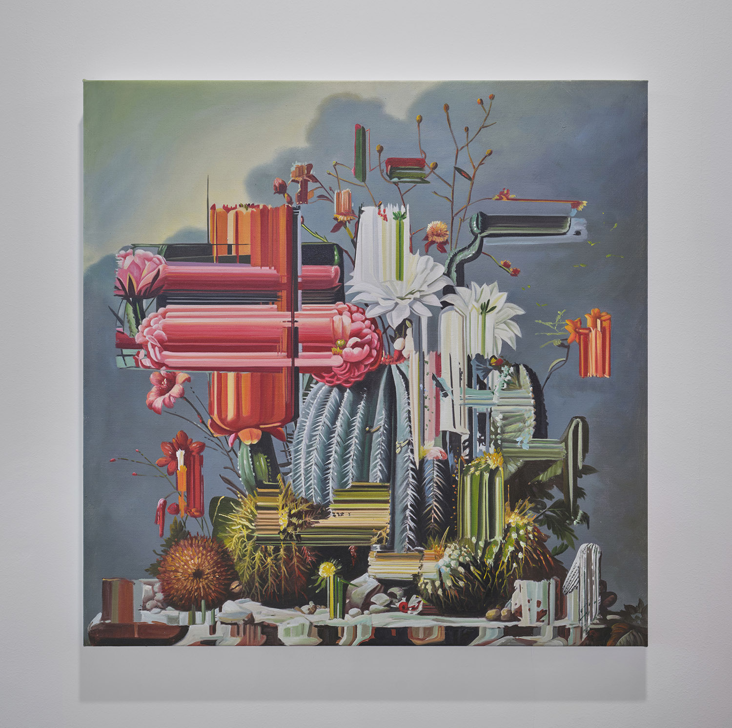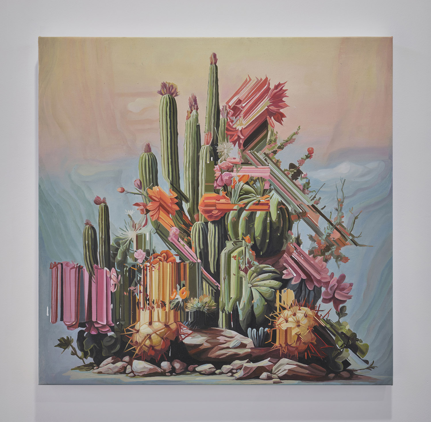 Alexis Mata, Espejismo De Un Jardín De Cactus #3, 2024, oil on canvas, 35 x 32 inches, 80 x 80 cm.