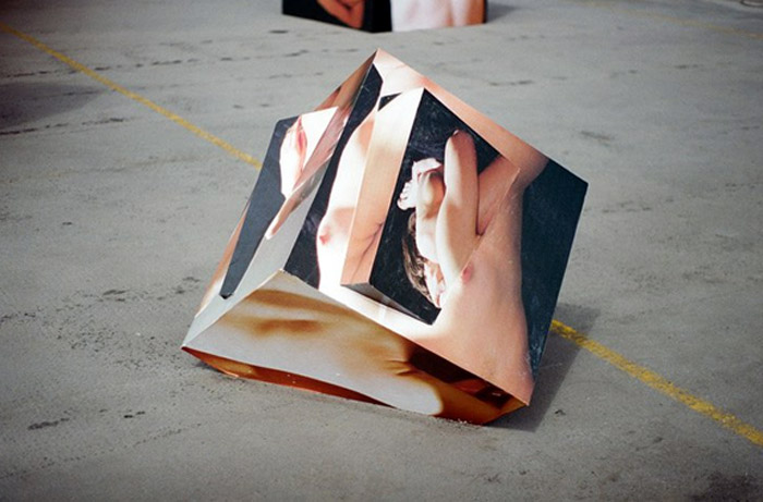 The exhibition will focus on the intersections between the ideas, photography and sculptures that define Matthew’s work. Four large photographic sculptures will be installed in the pool area that incorporate tangles of figures printed on wood and arranged into polygonal volumes.