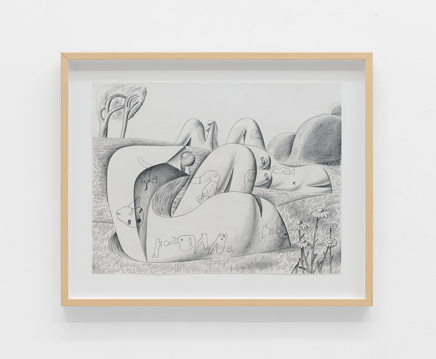 Leo Park, Landscape With Figures 1, 2022, Pencil on paper, 20 x 26 inches, 50 x 65 cm.