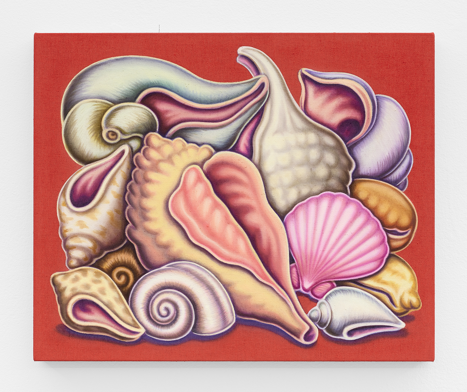 Pedro Pedro, Sea Shells, 2023, Textile paint on linen, 18 x 22 inches, 46 x 56 cm.