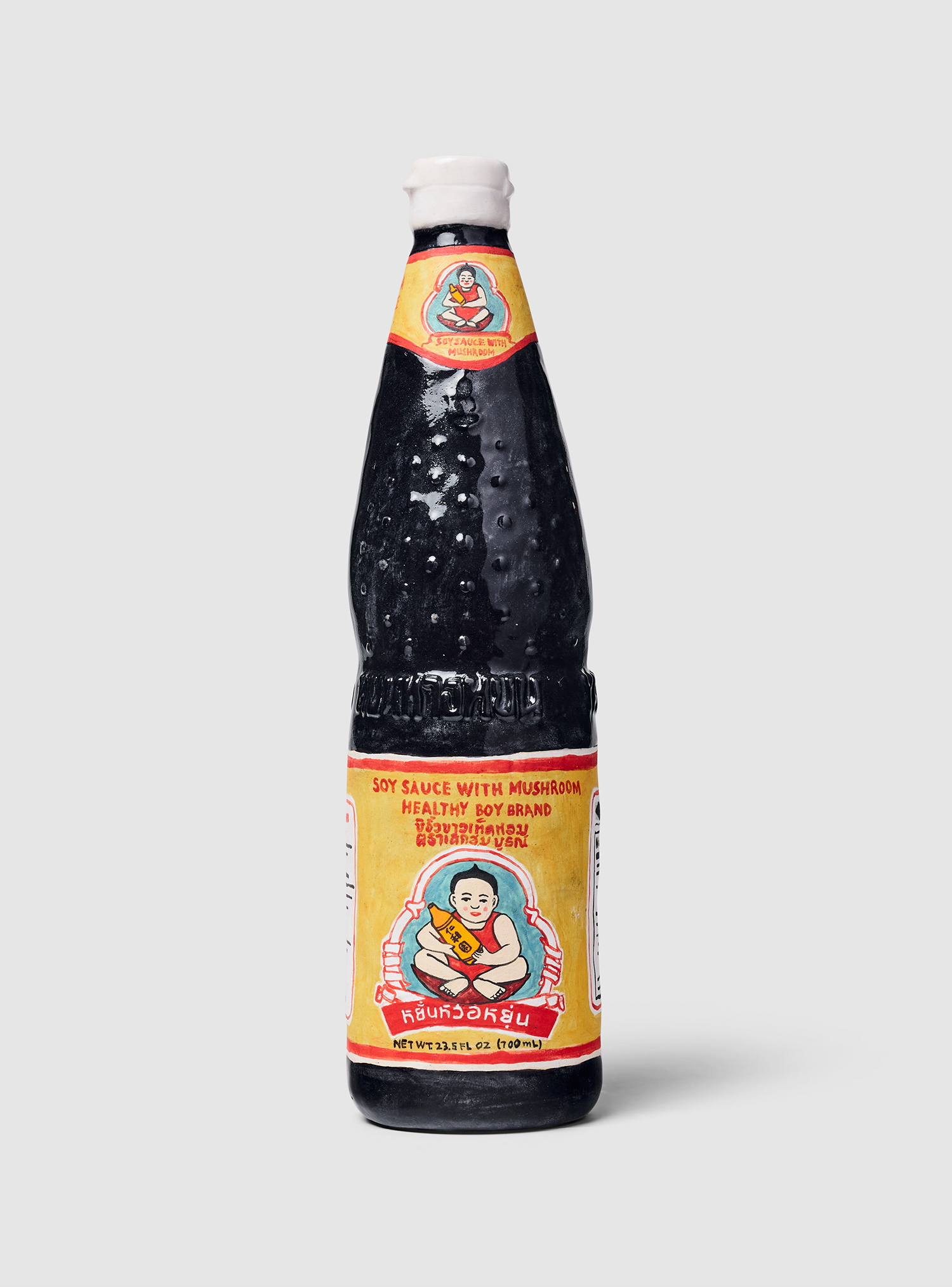 Stephanie H. Shih, Healthy Boy Brand Soy Sauce With Mushroom, 2020, Ceramic, 11 x 3 x 3 inches, 28 x 8 x 8 cm.