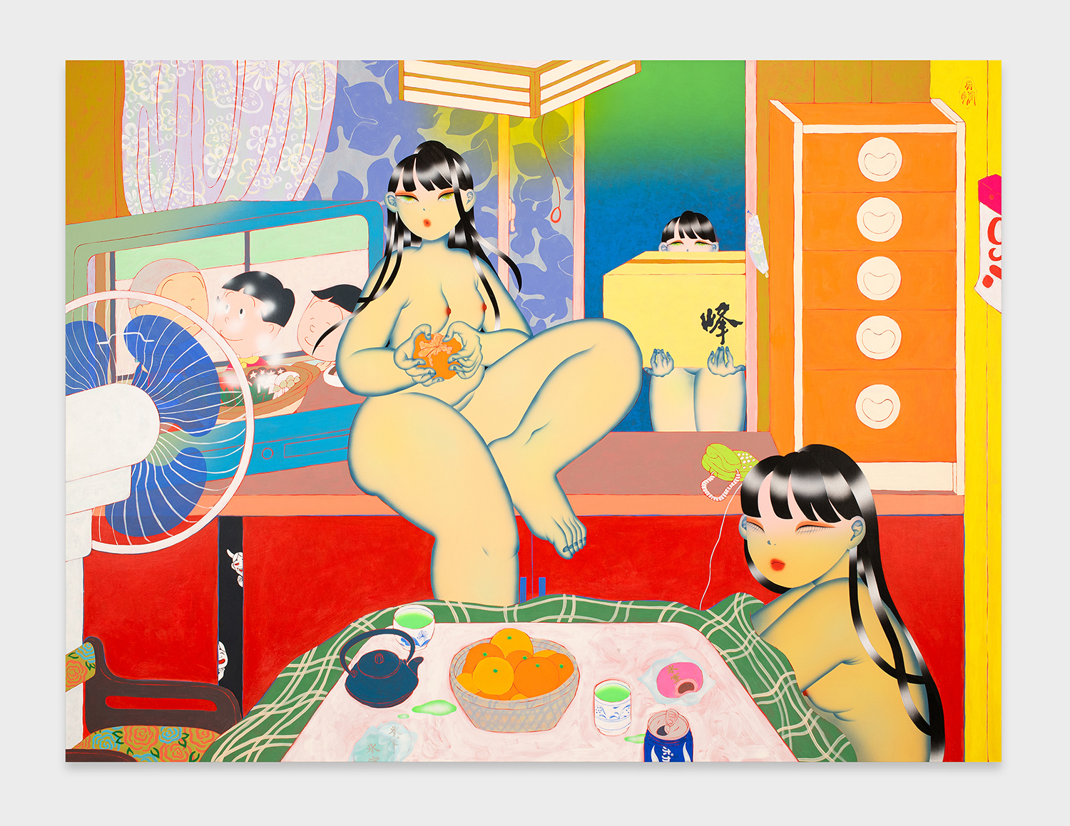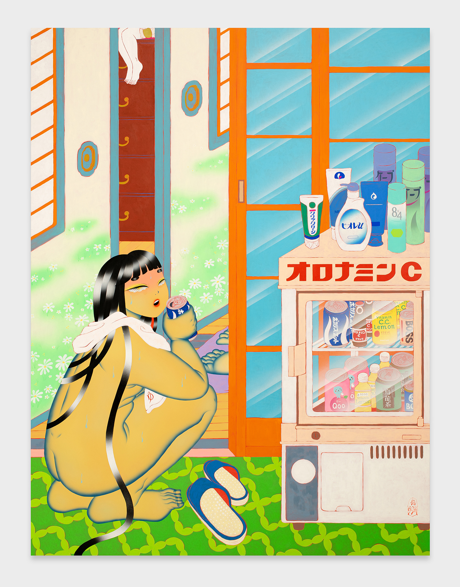 Maya Fuji, A Post Bath Treat, 2022, Oil stick on paper, 48 x 36 inches, 121 x 91 cm.