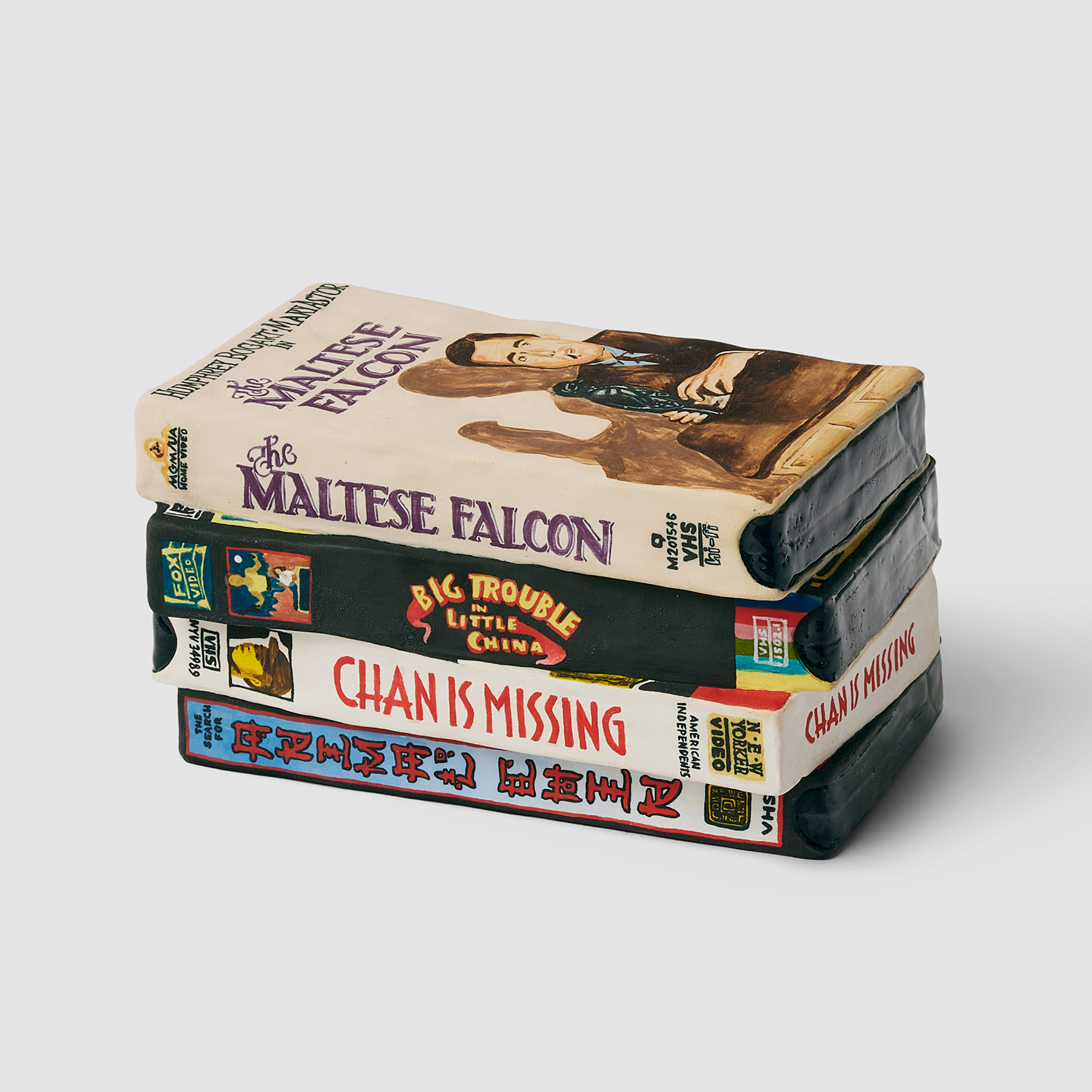 Stephanie H. Shih, Four VHS Tapes, 2022, Ceramic, 4 x 8 x 4.5 inches, 10 x 20 x 11 cm.