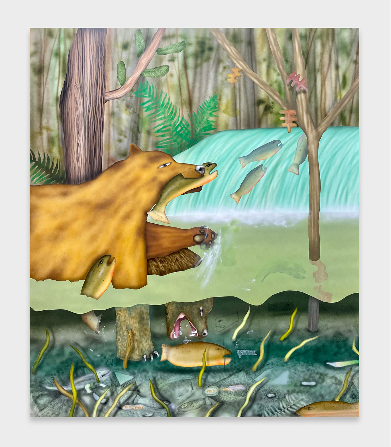 Matt Belk, Salmon Run, 2023, Acrylic on canvas, 47 x 40 inches, 119 x 102 cm.