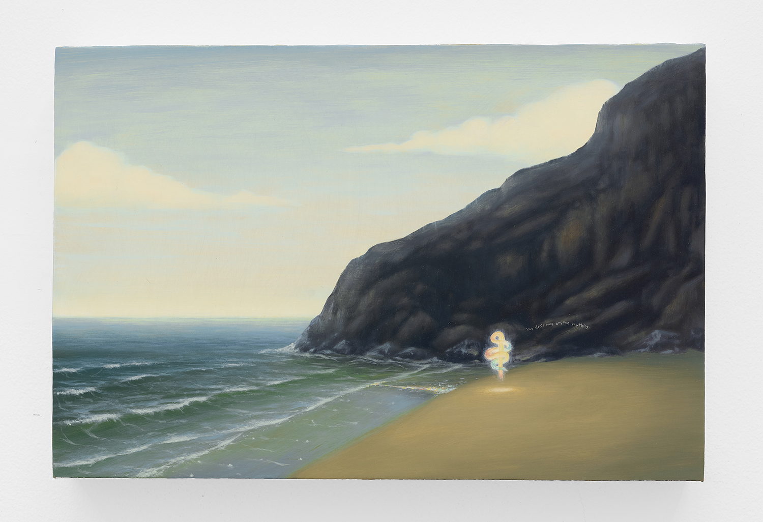 Dan Attoe, Beach Ghost/Oracle, 2023, Oil on canvas on panel, 18 x 12 inches, 46x 30.5 cm.