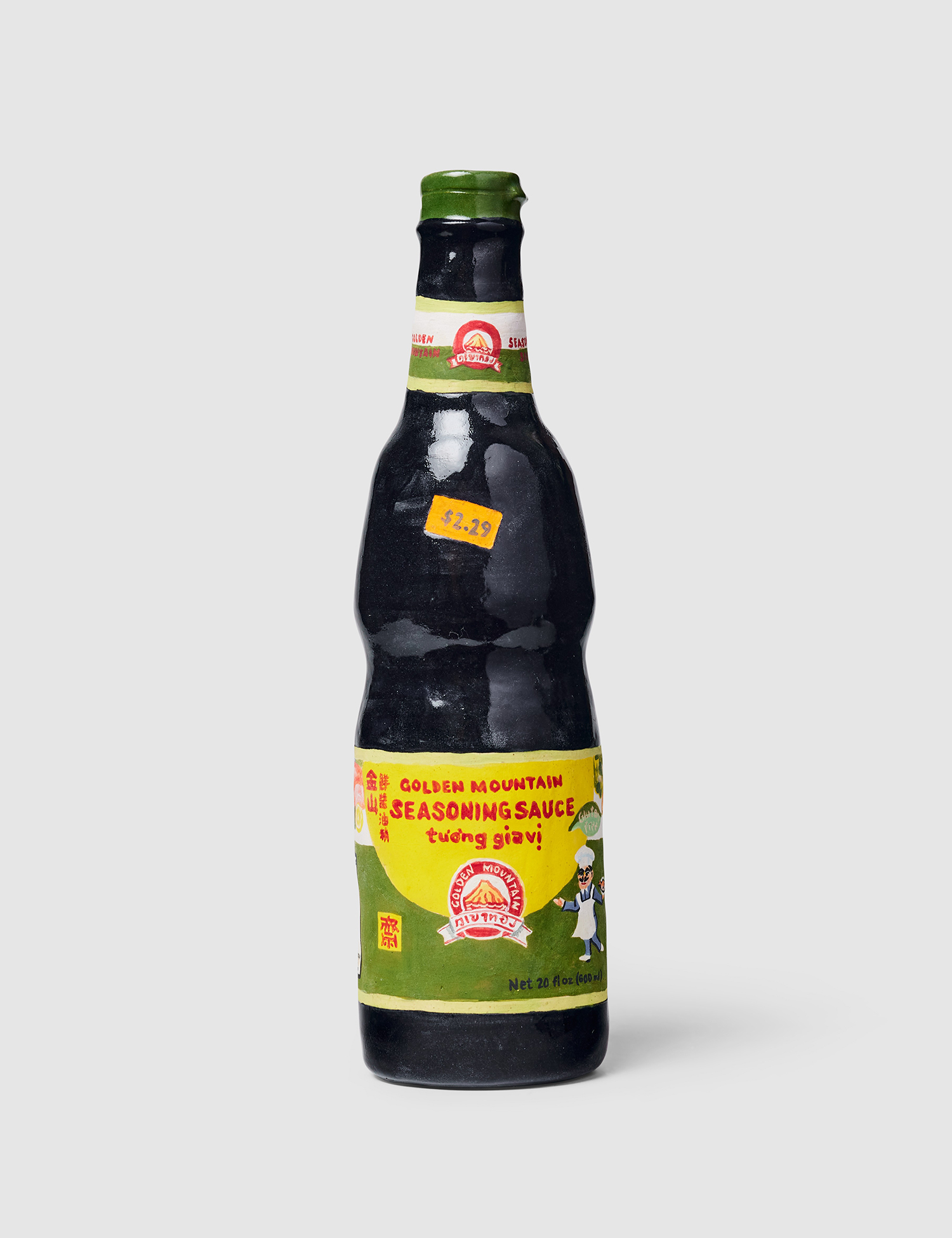 Stephanie H. Shih, Golden Mountain Seasoning Sauce, 2020, Ceramic, 10 x 3 x 3 inches, 25 x 8 x 8 cm.