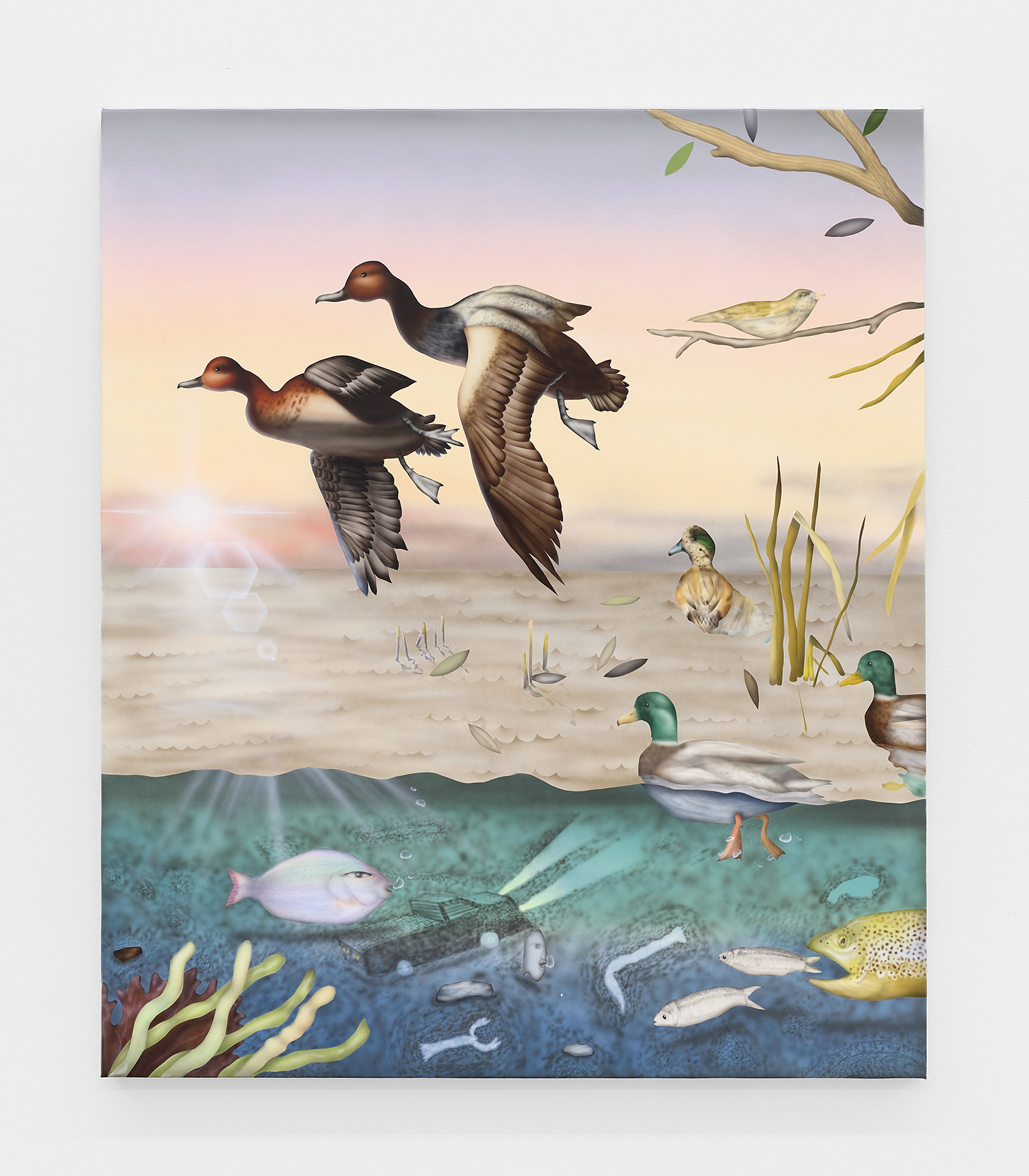 Matt Belk, Ducks, 2023, Acrylic on canvas, 47 x 40 inches, 119 x 102 cm.