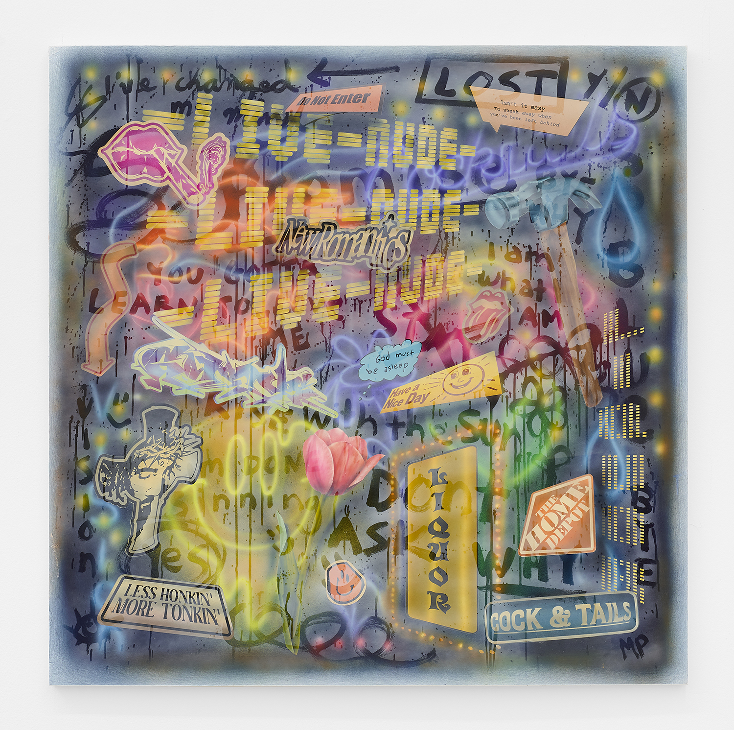 Monica Kim Garza, Dirty Martini, 2023, Oil and glitter on canvas, 58 x 77 inches, 147 x 196 cm.