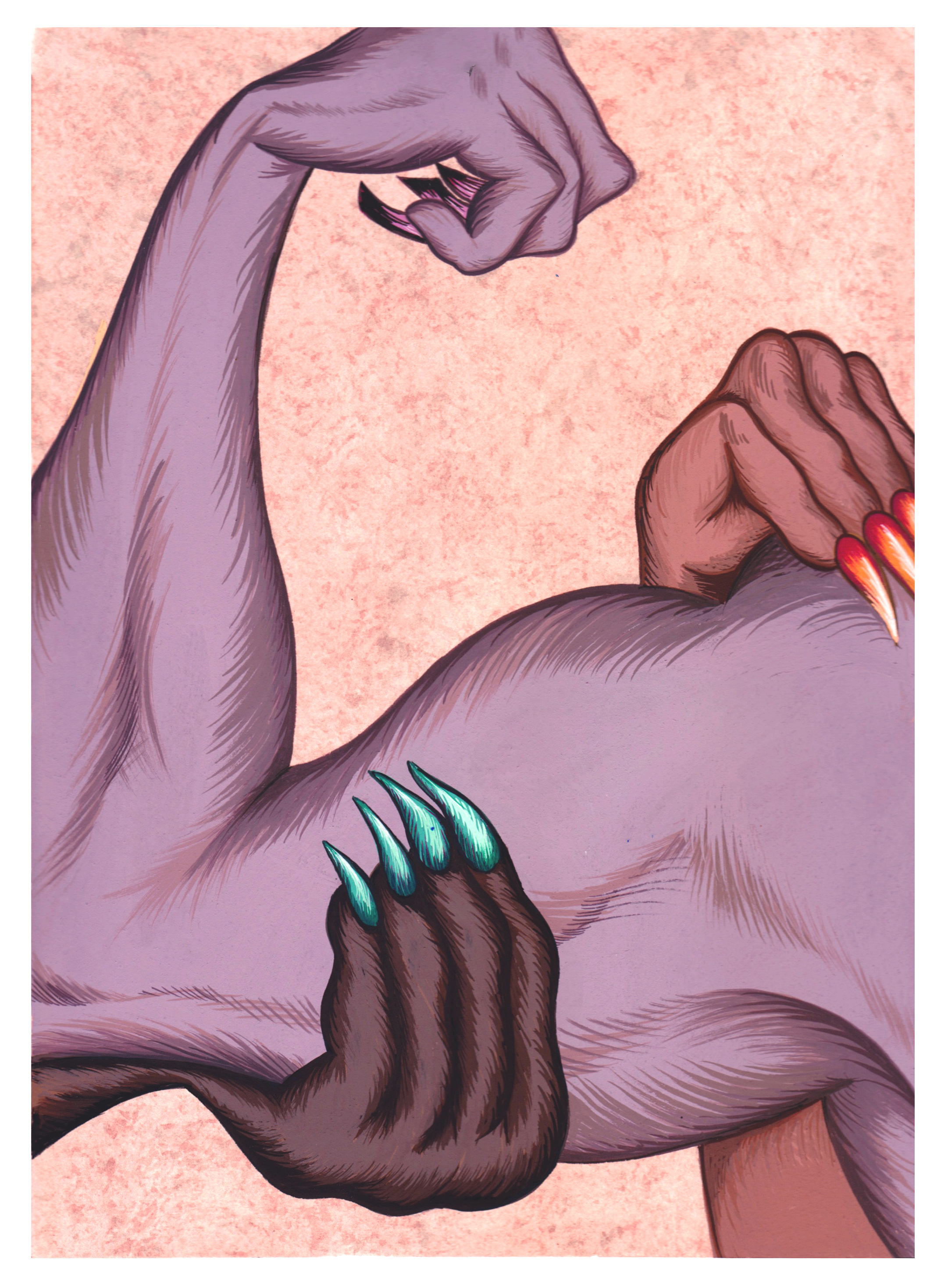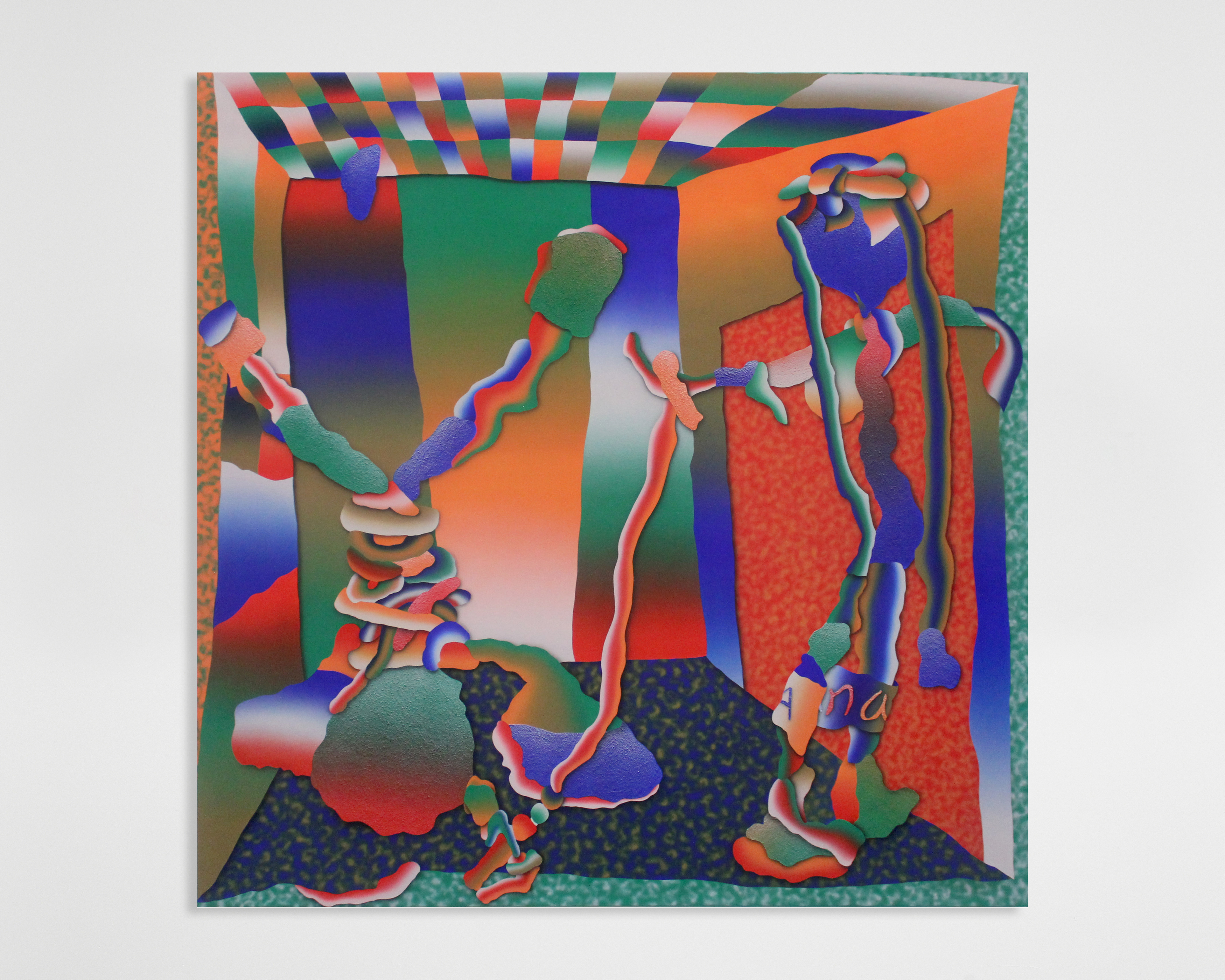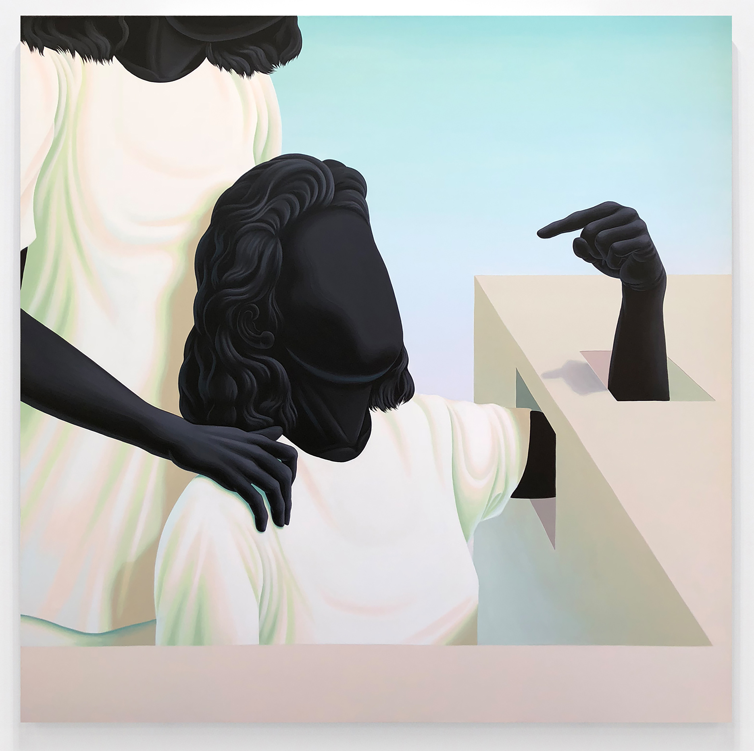 The Hole is very excited to participate in ZONA MACO for the first time, presenting a group booth of young artists working with Surrealist strategies. From the eerily repeated women in Julie Curtiss' triptych to the naked and screaming women painted by Belgrade-based Maja Djordjevic, the female form is also a through-line. Alex Gardner paints an unsettling but lovely scene of two women pointing, Anja Salonen exhibits a two-sided screen painting and a new canvas of a slumbering boulder lady, while Morgan Blair contributes three new airbrush and pumice works, blurred and abstracted, depicting perhaps some breakdancers and at least one "RAW" wrester.