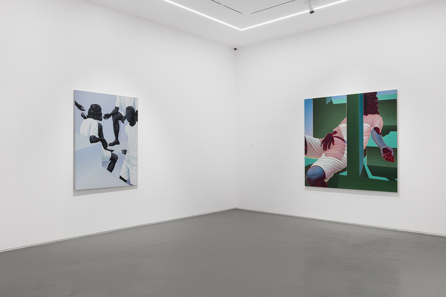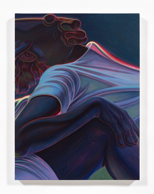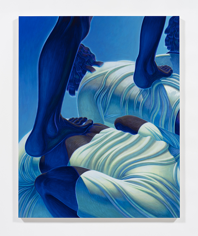 In these paintings the artist charges the familiar with poignancy, highlights the details as important, and paints figures that all genders and races could see themselves in. Mimicking snippets of classical painting—from an El Greco hand to a Pietà carry, a crucifixion foot, a Michelangelo muscle group—he is not just inserting his contemporary identity into art history, but also opening up these art historical perspectives for all viewers to connect with.