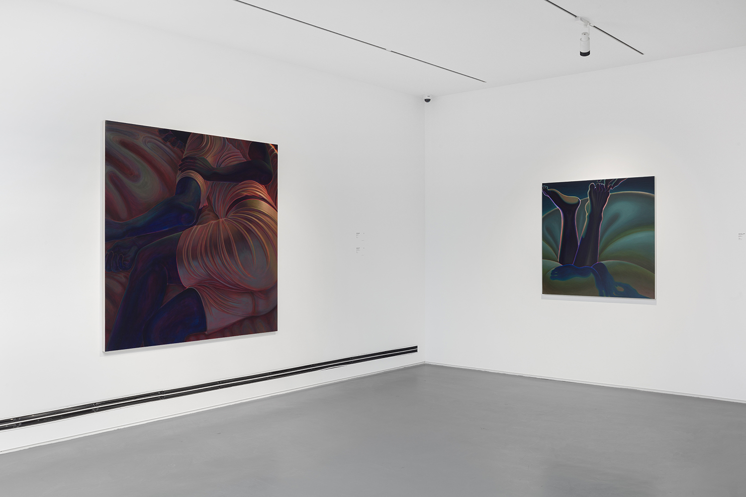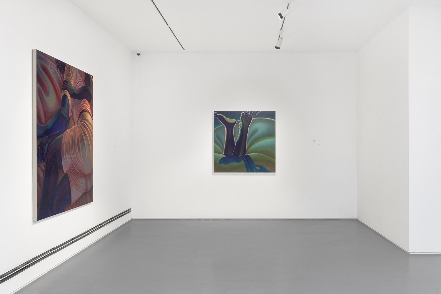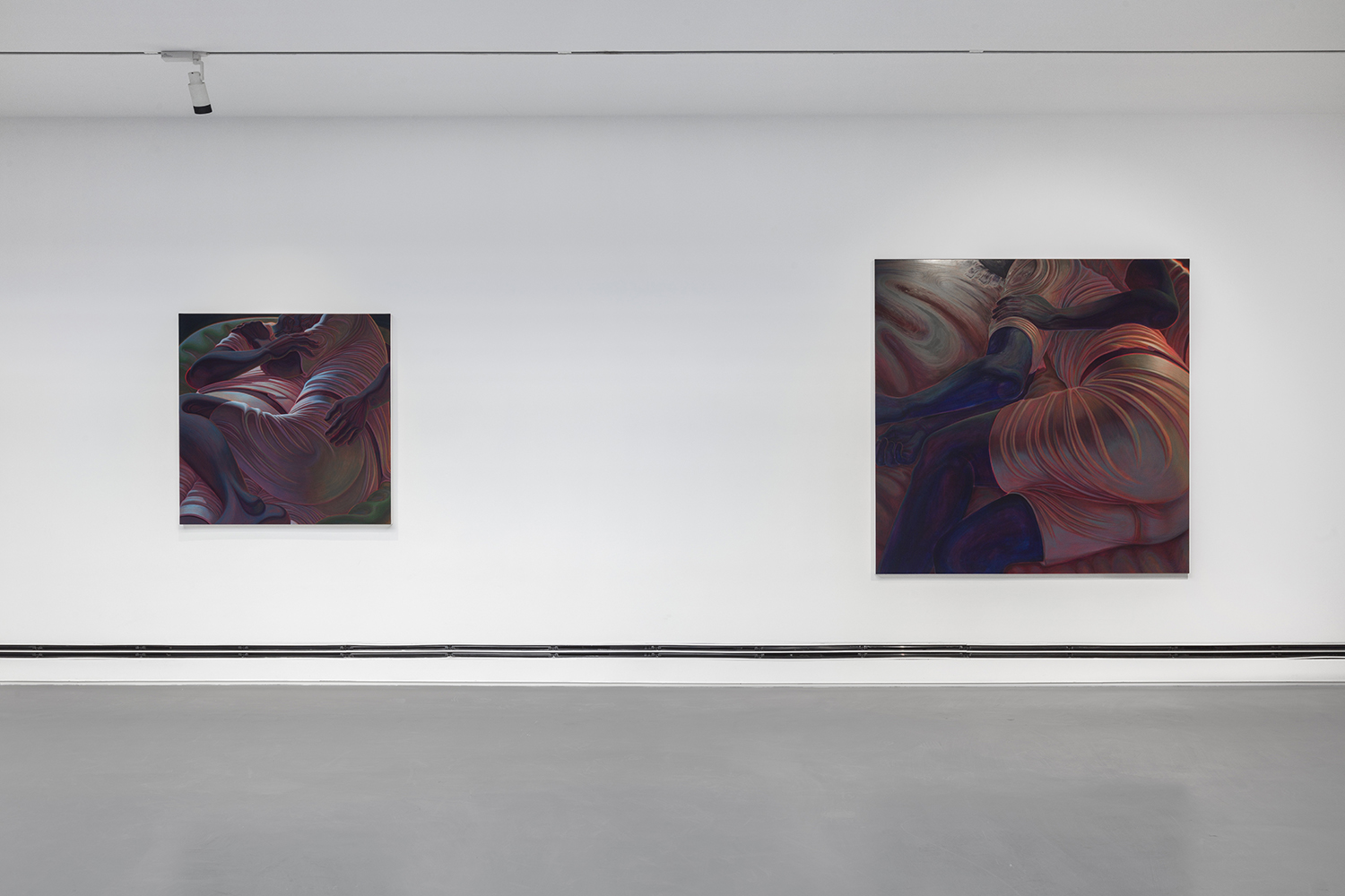 What truly unfolds in each artwork is mysterious yet familiar, perhaps speaking to the ever-changing dynamics of interpersonal relationships. The artist's works are imbued with a cinematic touch—viewers are spectating from a fixed perspective, carefully observing the relationships between Others. Observing the rejected individualism and how human reality is understood as an “ensemble of social relations”. Gardner creates nebulous surroundings with dim hues in his recent works, the bodies are outlined by flickering glimmers, and skin colours are further rendered opaque. Perhaps what truly matters is not where we are or with whom we are sharing the moments, but the emotions that we are open to perceive and embrace, as well as the anxiety and apprehension that may lurk beneath the veneer of beauty and serenity. The titles of Gardner's paintings are often playful and ironic, containing carefully crafted phrases that sometimes defy interpretation, and other times (mis)leading or twisting interpretation. These qualities of humour and comedy reveal the artist's approach to reconciling endurance and contemporary dilemmas.