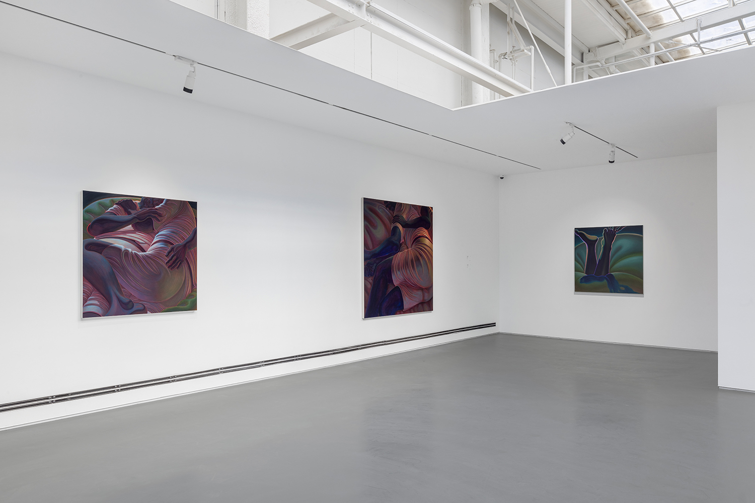 亚历克斯·加德纳绘制人物,他用丙烯描绘紧张而难忘的场景。他笔下纠缠在一起的墨黑色躯体披着大幅折叠的白色棉单衣,在粉彩环境中摆出各种姿势,色彩的反射产生着微妙的渐变和丰富的色调变化。