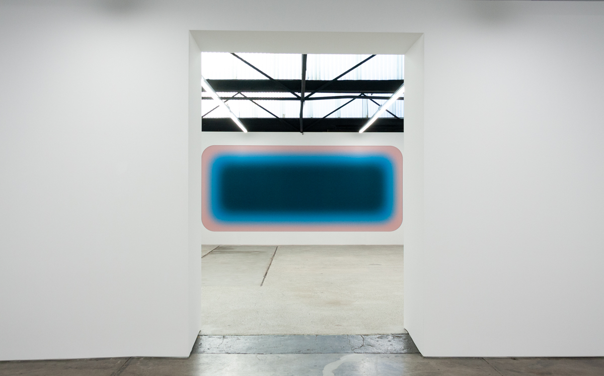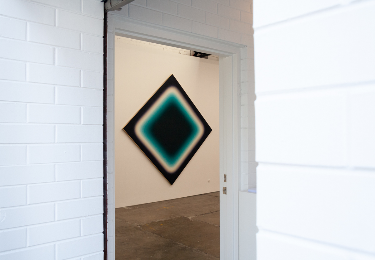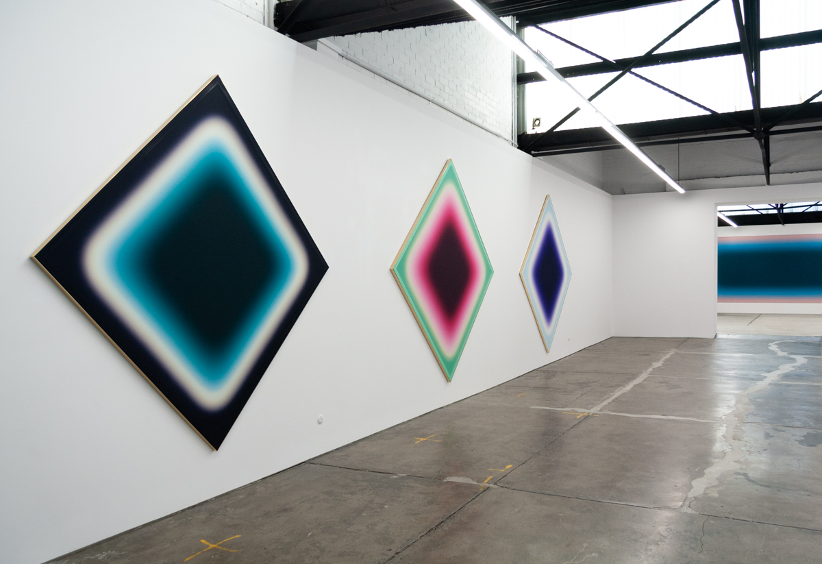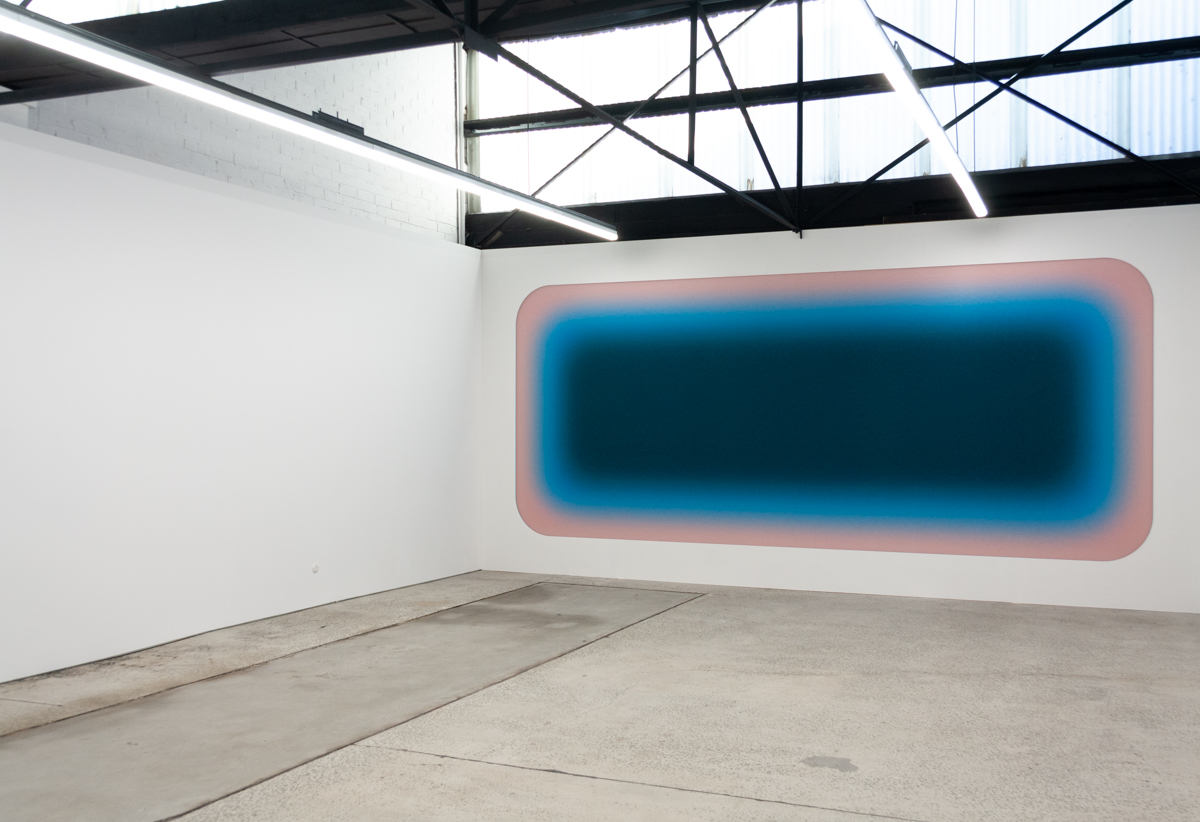 A solo exhibition of works by Jonny Niesche is now open at 1301SW in Melbourne. Atoms Encode sees the Sydney-based artist push his unique painting practice even further, literally stretching it to create a work that holistically “skins” the entire rear wall of the gallery.