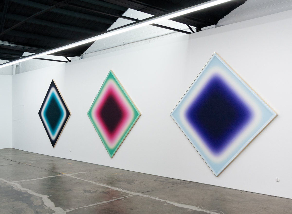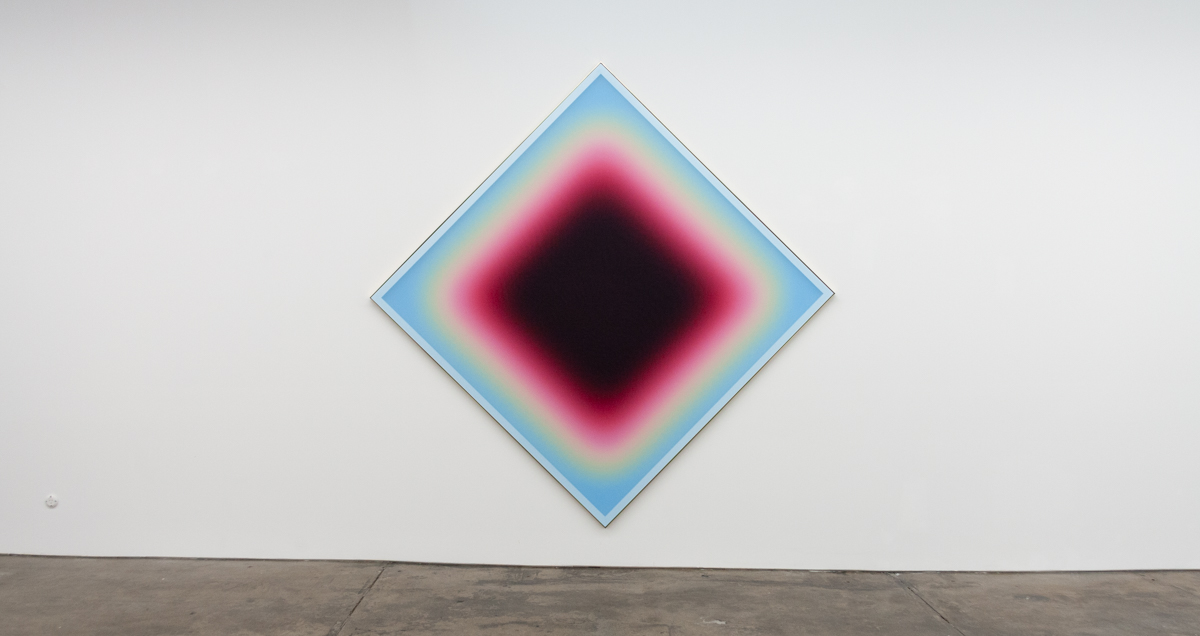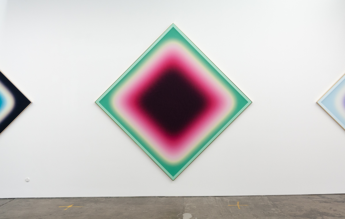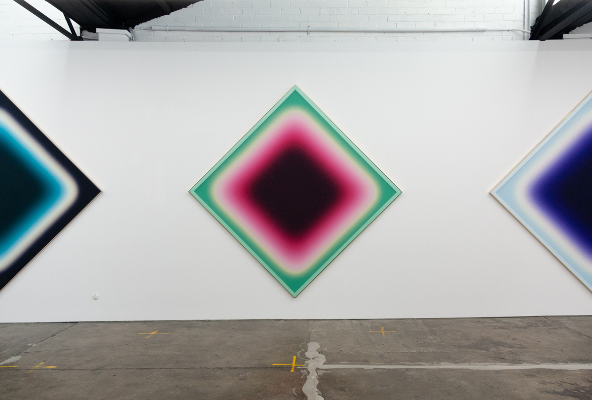 A solo exhibition of works by Jonny Niesche is now open at 1301SW in Melbourne. Atoms Encode sees the Sydney-based artist push his unique painting practice even further, literally stretching it to create a work that holistically “skins” the entire rear wall of the gallery.