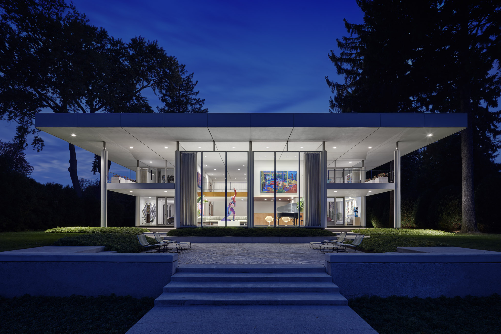 Library Street Collective is thrilled to present a unique online exhibition with New York-based artist Jonathan Chapline. Titled Virtual Window, the works in the exhibition feature metro Detroit’s historic W. Hawkins Ferry House, which was built in 1964 to highlight its namesake’s exemplary collection of modern art and unobstructed views of Lake St. Clair. Chapline employs historical and contemporary images of the home to create vantage points within the works that are an amalgamation of distinct snapshots in time, amplifying architectural details, iconic works of art, and the expansion of space.